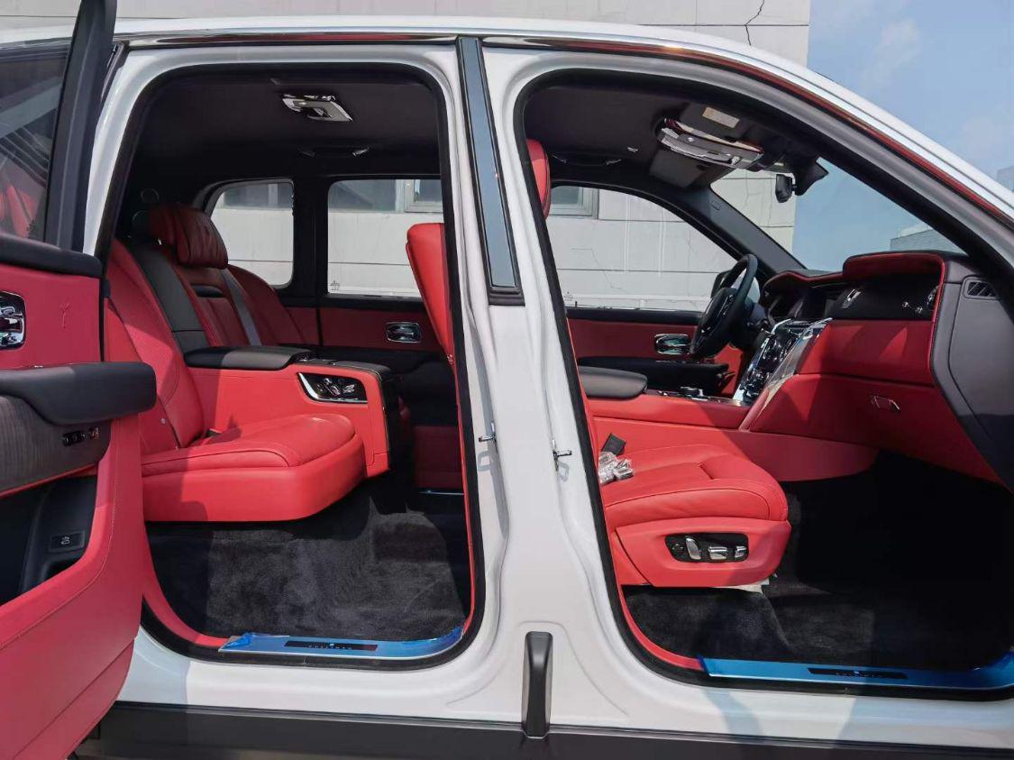 勞斯萊斯庫里南標志性的對開式車門設計,兩扇車門均可開啟乎90度,以便車內成員方便上下車,配合大尺寸的天窗,讓車內乘客感覺更加舒適。從側面車頭處看,庫里南與家族旗艦幻影如出一轍,作為車主來說,這是一件值得去炫耀的事情。開門時車身會自動下降40mm,方便乘客上下車,啟動后車身則會自動升高。